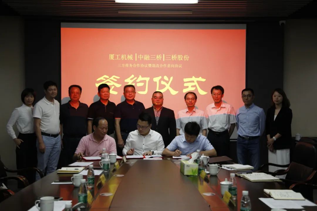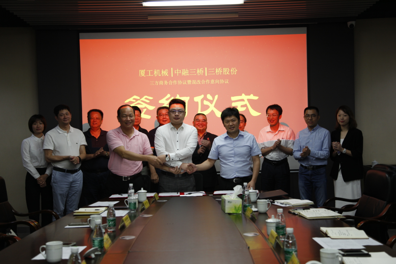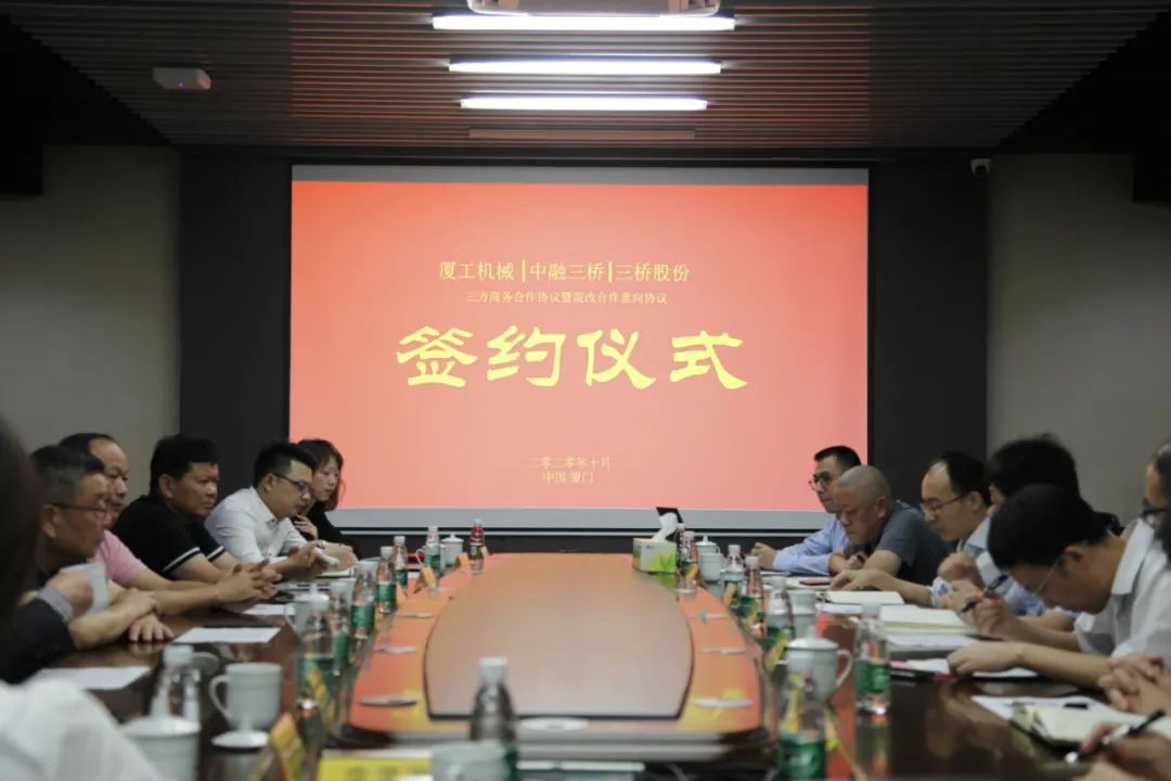 福建省機(jī)械工業(yè)聯(lián)合會會長許振明;廈工股份公司總裁林春明、副總裁兼財務(wù)總監(jiān)李喜勇、總工程師黃鶴艇;中融三橋公司蔡報軍、董事長姜洋、總經(jīng)理吳繼成出席簽約儀式。